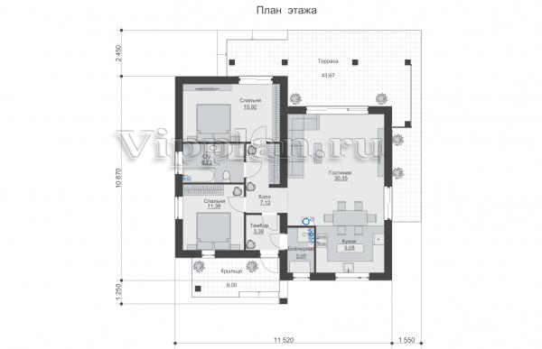 | Размеры дома: | 10.87м×11.52м |